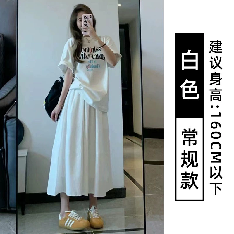 White spring and autumn a-line mid-length skirt for pear-shaped body