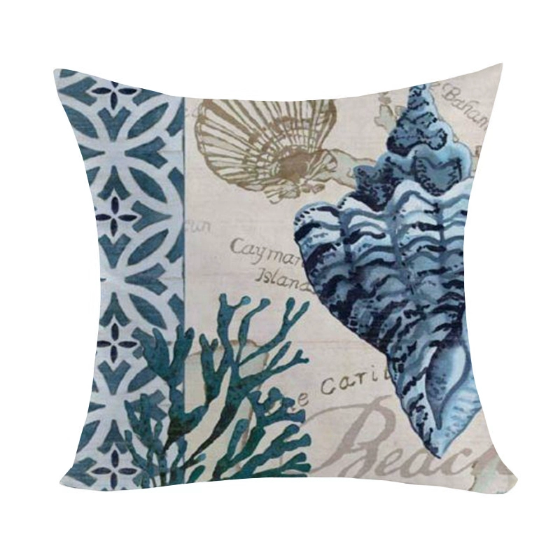 Ocean pattern oil painting pillow case living room sofa decoration cushion cover light luxury ethnic style plush printed pillow