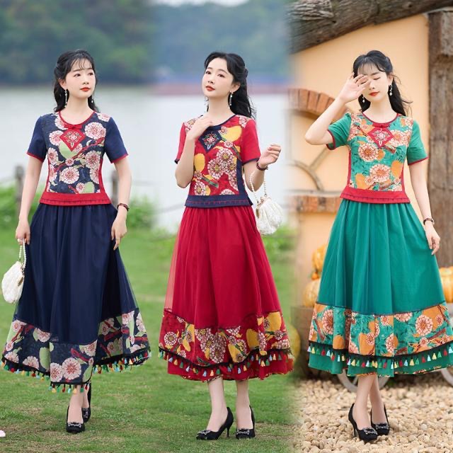 Yunnan clothing factory wholesale Women’s ethnic clothing cotton and linen ethnic style suit two-piece square dance clothing