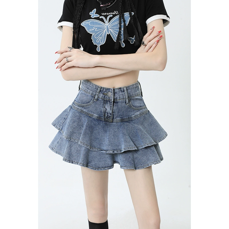 Hot girl American A-line slimming denim skirt for women