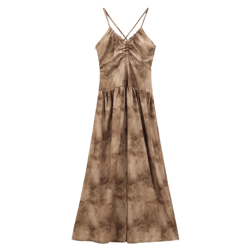 V-neck A-line skirt summer retro new style suspender neck