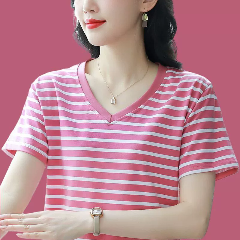 Striped 2024 new summer loose short -sleeved T -shirt
