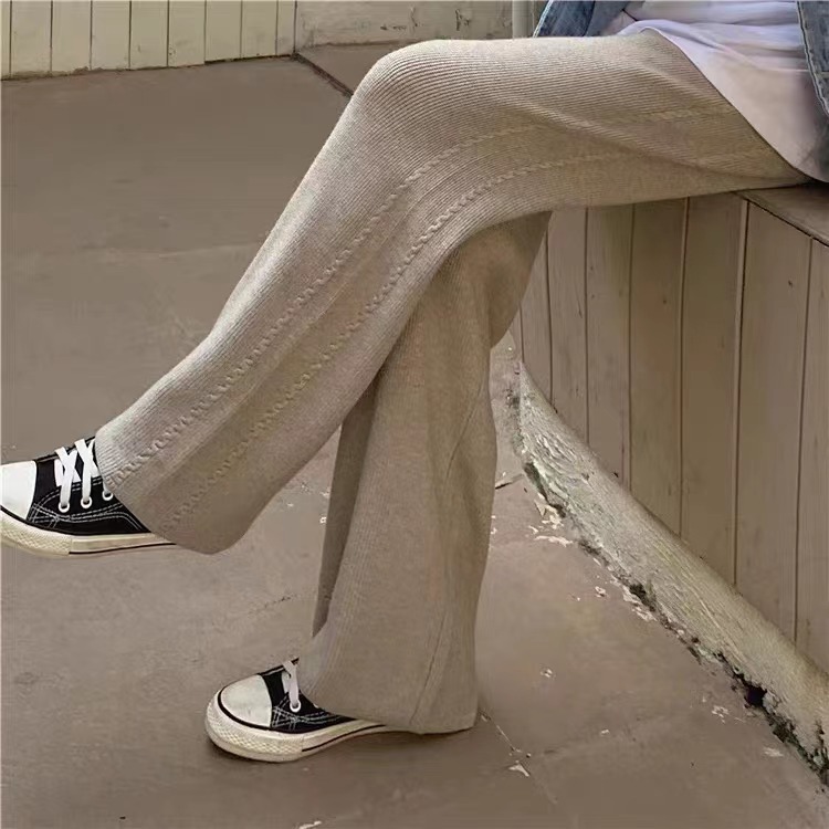 Design twist knitted wide-leg pants for women autumn and winter thickened high waist draping mop pants casual straight pants