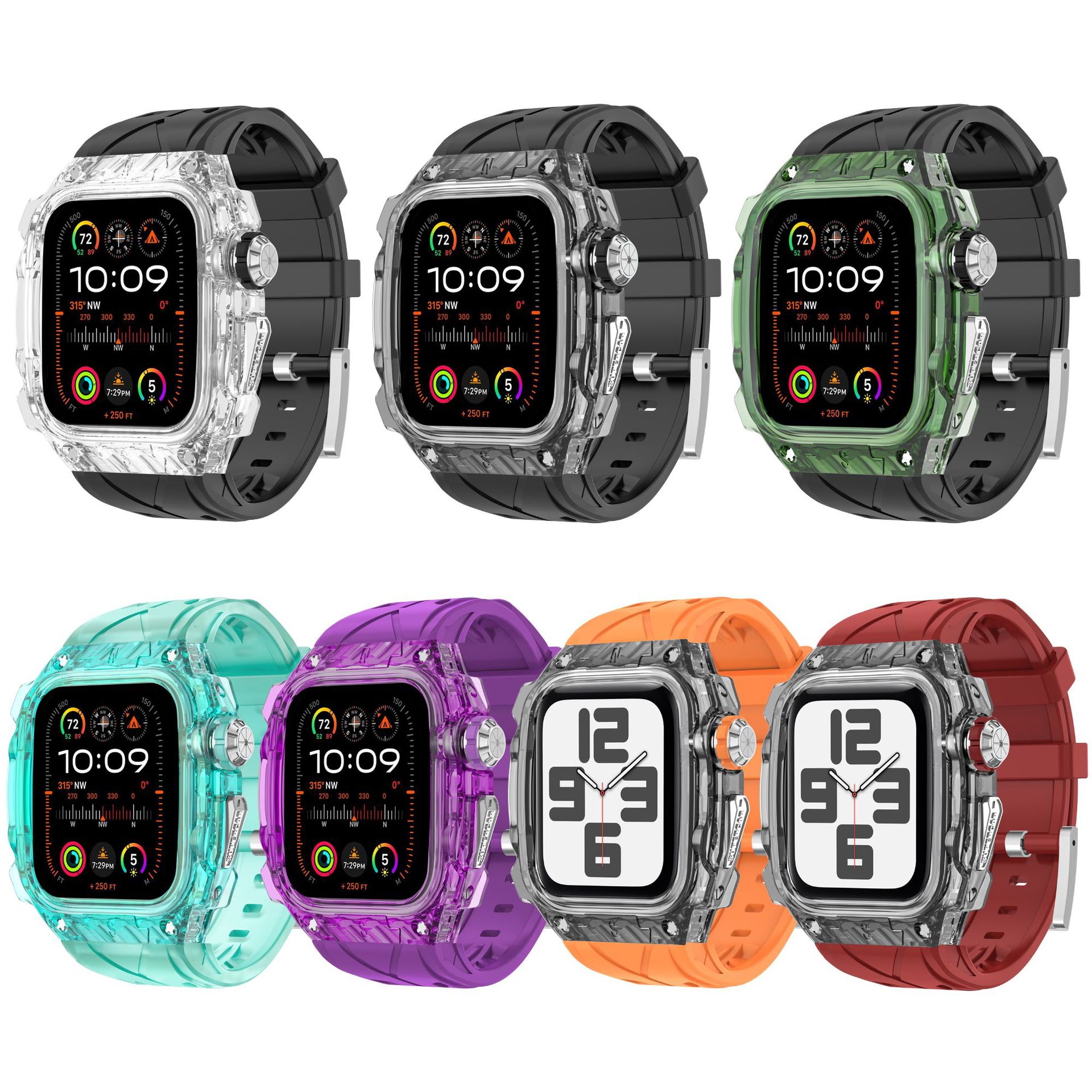 For apple watch integrated strap 44/45mm super running transparent black appleiwatch9876 strap wholesale
