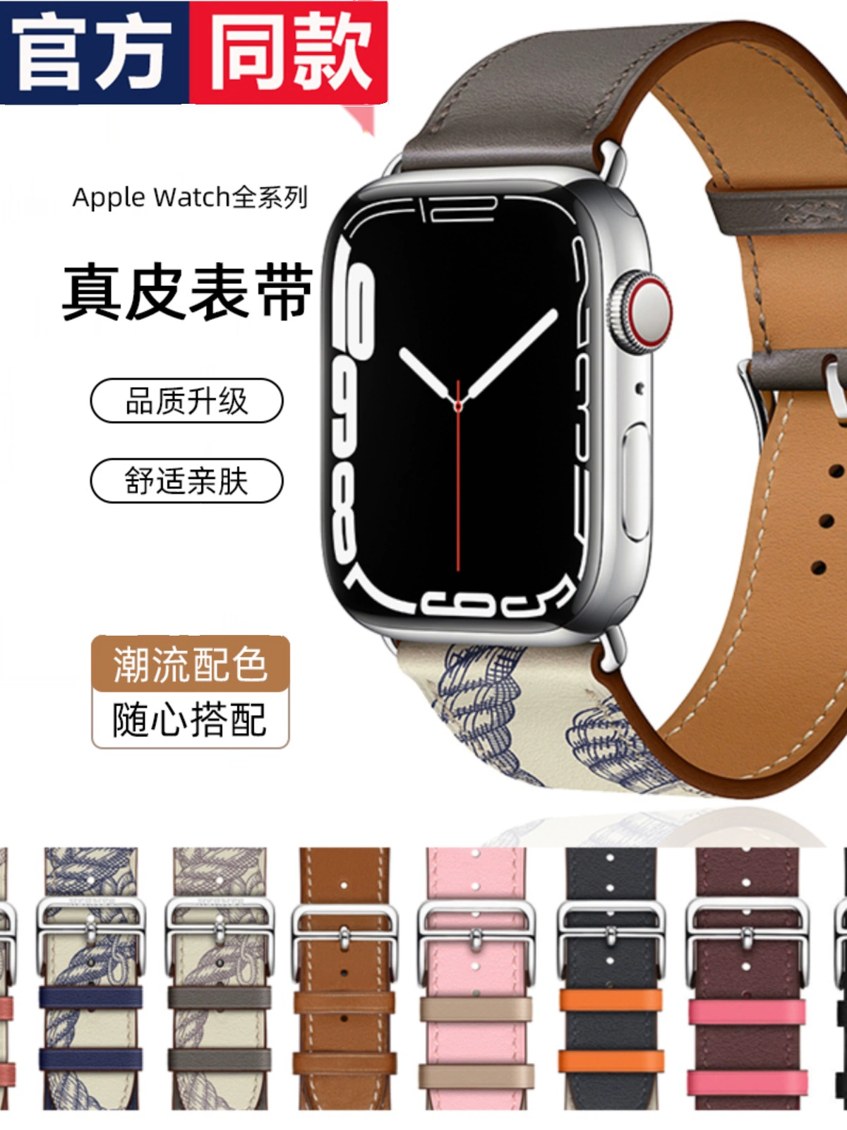 Applicable Apple Watch10 strap Apple S8/S9 leather wristband qatch8/7/6/4/4/5 generation PU cortex replacement S7 watch band of men and women 42/44/45mm smart accessories