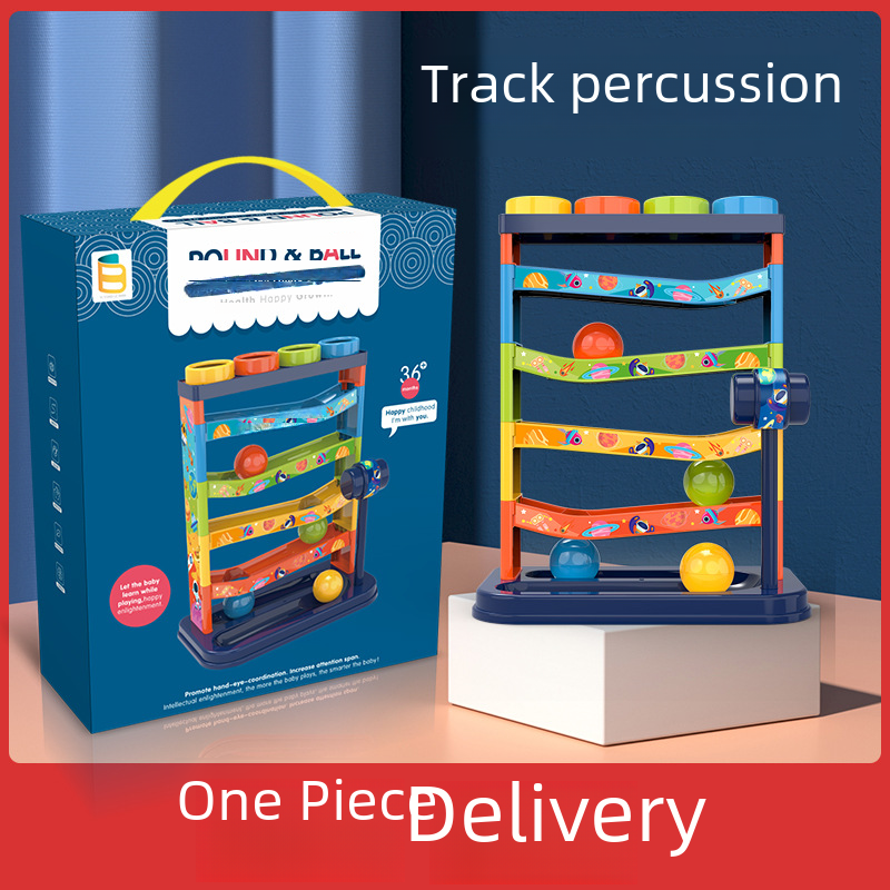 Cross-border Color Track Slide Rolling Ball Early Education Educational Knocking Toys Children’s Fun Knocking Music Piling Table Toys