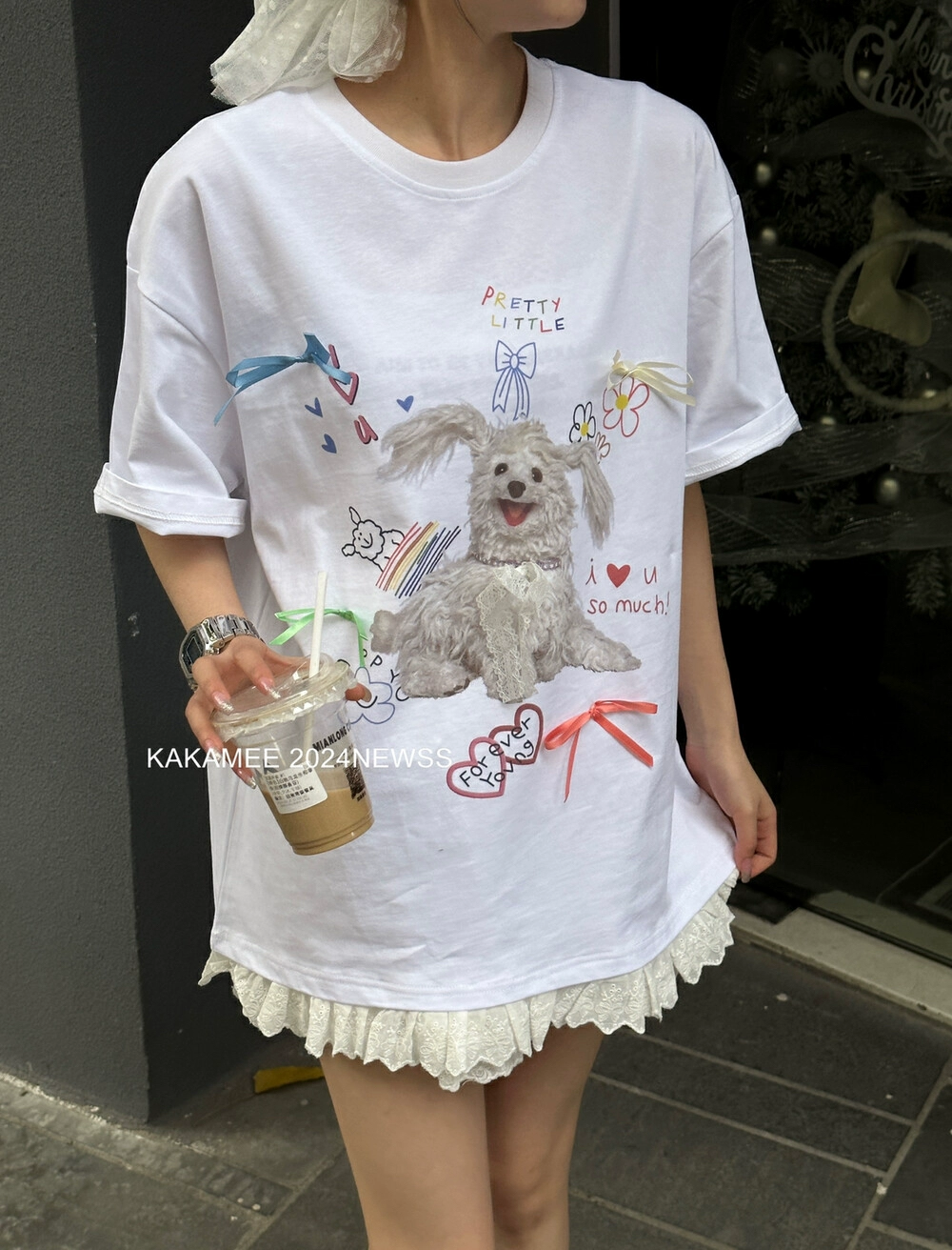 KAKAMEE stylish puppy short-sleeved contrasting color bow