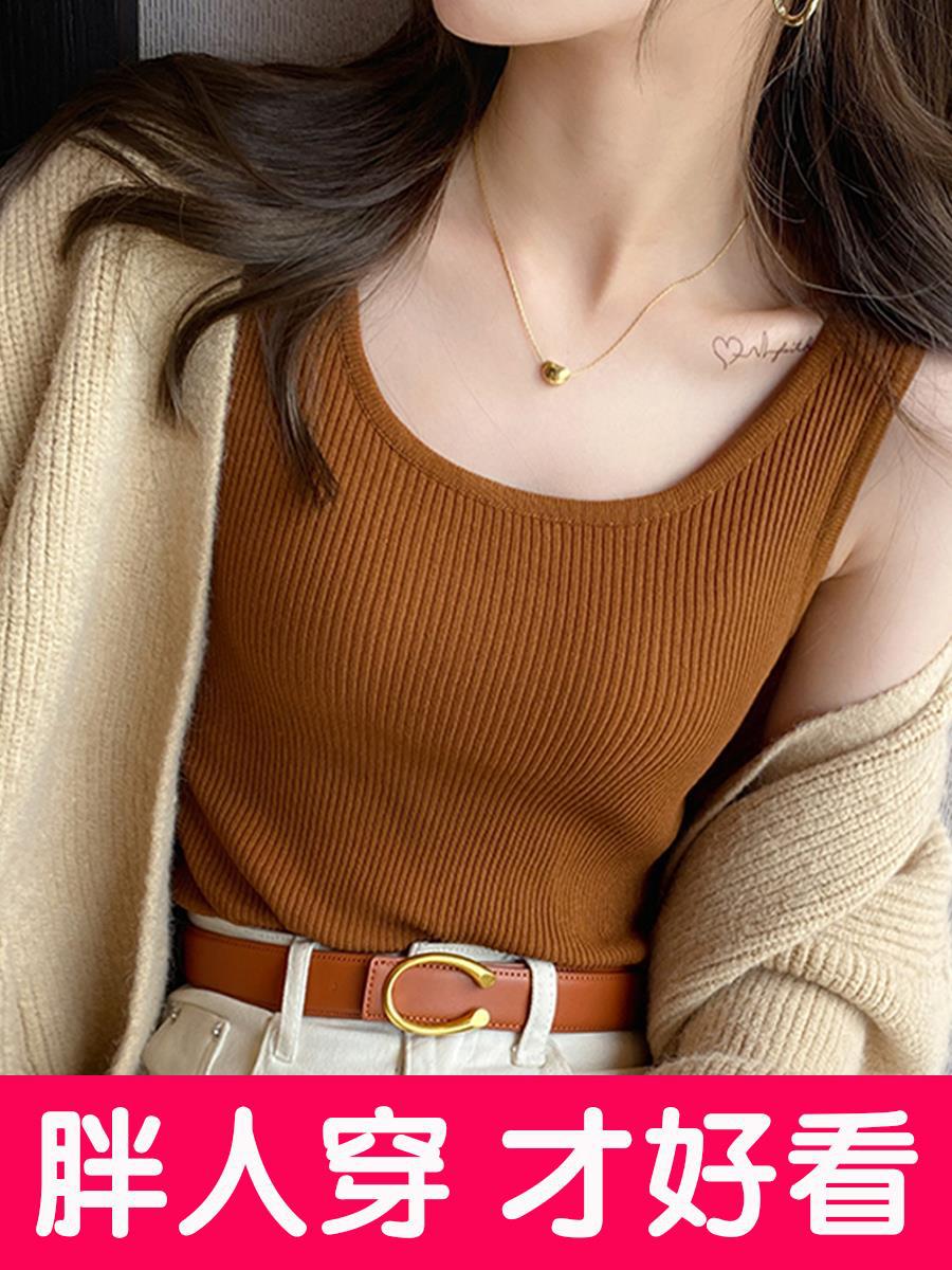 T-Needle Woven Vest Women’s Suit Wear plus size Base Sling Cover Breast Wide Shoulder Strap Ice Silk Sleeveless Top chubby girl