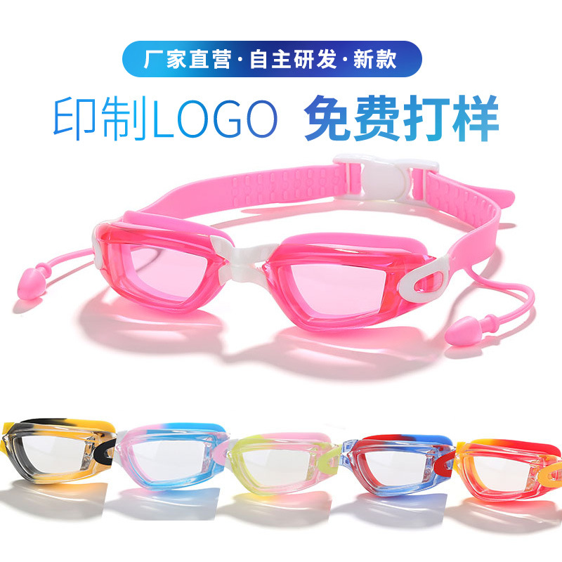 Children’s swimming goggles earplugs integrated anti-fog HD waterproof flat light youth swimming glasses manufacturers wholesale cross-border