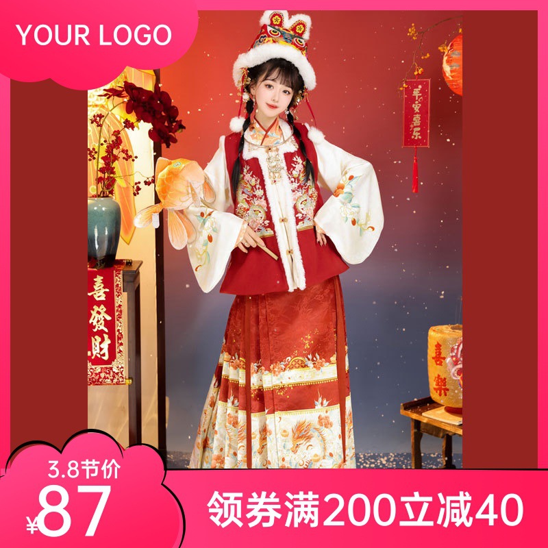 Lingxiluo original Yulong Yunfei Hanfu women’s Ming-made square collar embroidered Bijia vest dress New Year greeting dress winter fleece-lined