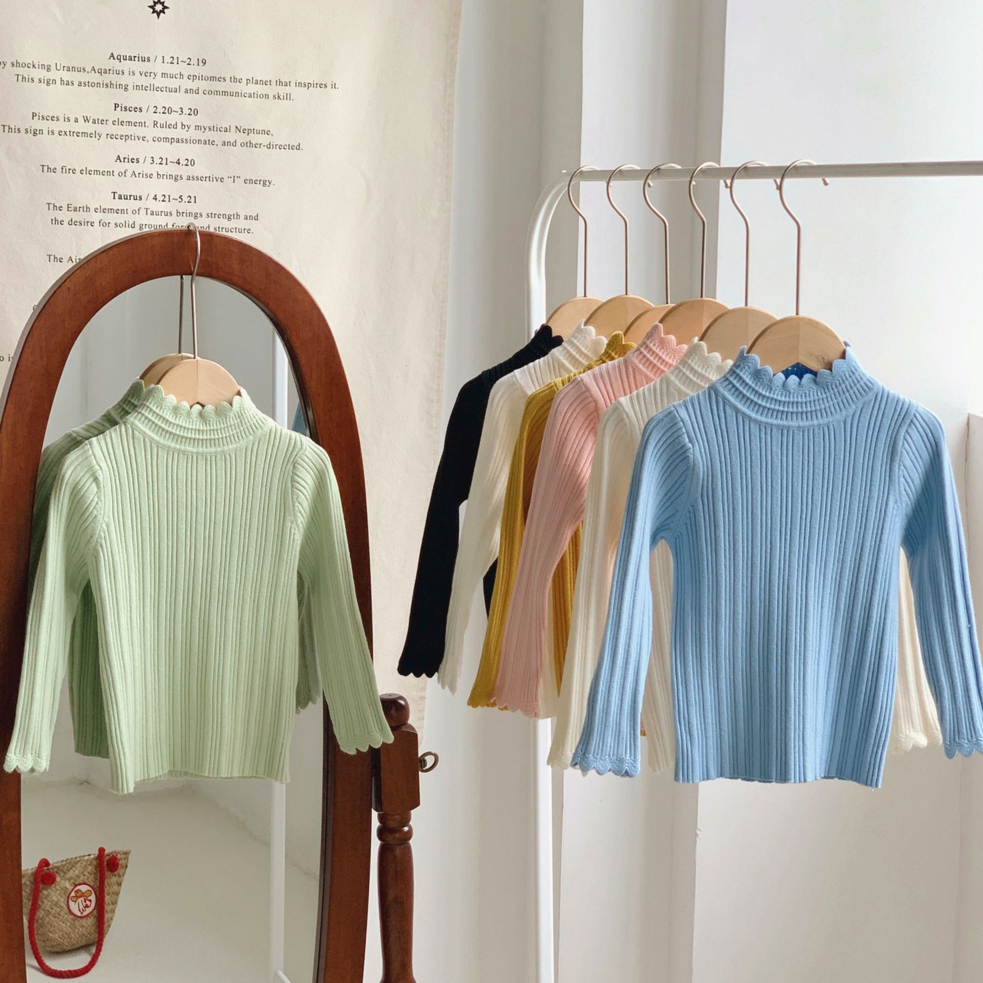 South Korea Children’s Sweater Pullover Spring and Autumn 2023 New Korean Girls’ Western Style Casual Inner Base Shirt for Small and Medium-sized Children