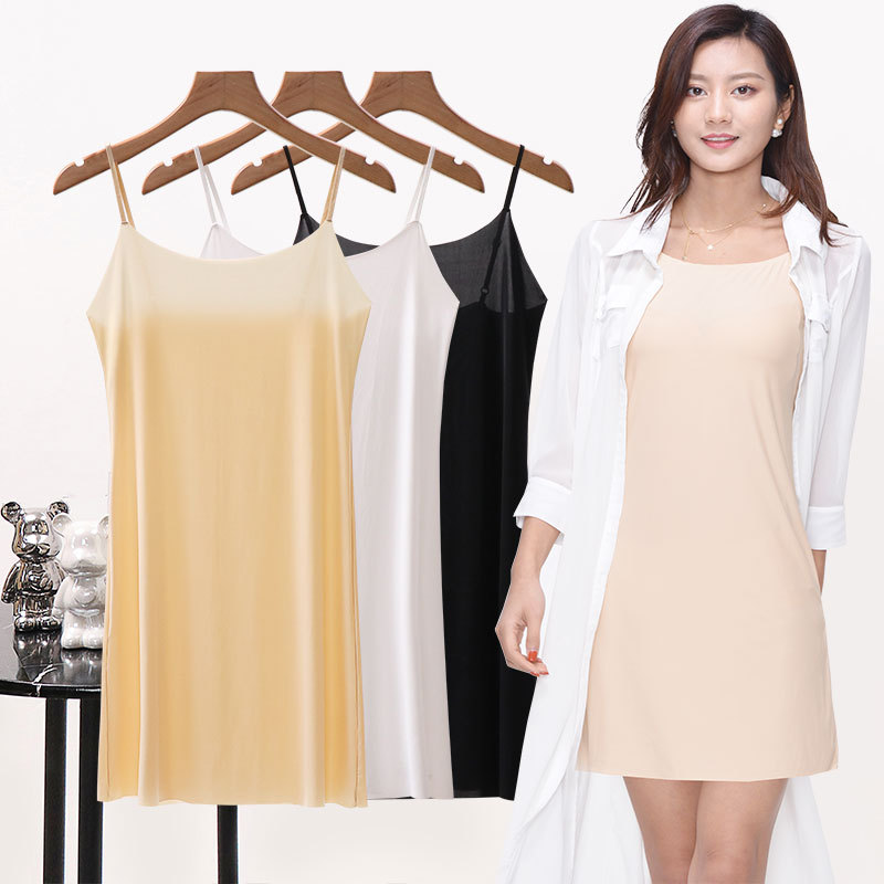 Summer ice silk seamless Vest Women’s Mid-length ultra-thin silky thin strap beauty back strap nightdress bottoming underskirt