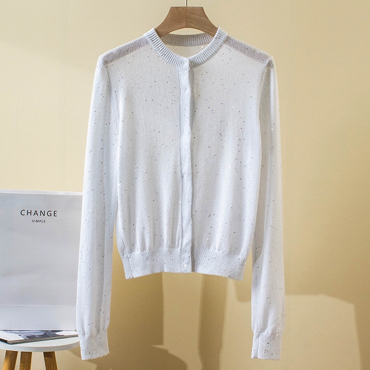 Linen Cardigan Round Neck Fine Sequins Thin Silk