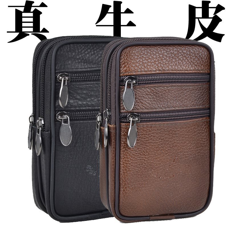 Top Layer Cowhide Mobile Phone Bag Vertical Wearing Belt Bag Zipper Waist Bag Work Bag Coin Purse Men’s Satchel Thick Cowhide
