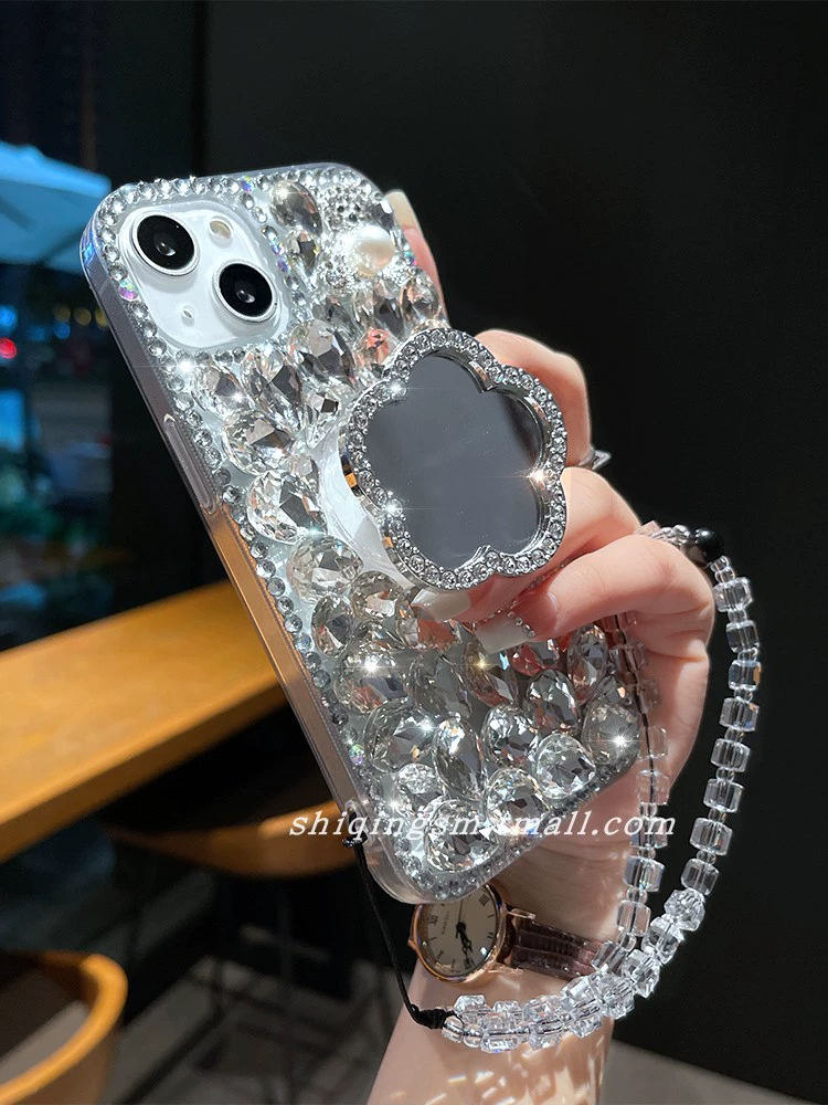 Applicable to Apple 14 mobile phone case 13 female iPhone15 Creative 8 new 7 beauty mirror 6s rhinestone 12Pro full -inclusive camera
