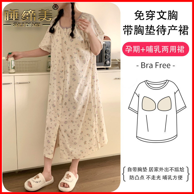Sleeping Beauty Pregnant Women’s Nightdress Women’s Summer Short-sleeved Cloud Cotton Nursing Pajamas Postpartum Home Clothes F2933