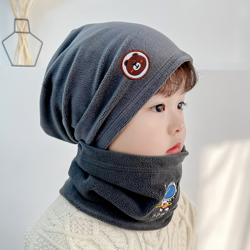 Autumn and winter hat collar two-piece suit children’s warm neck protection scarf boys and girls autumn and winter double layer fleece-lined pullover hat