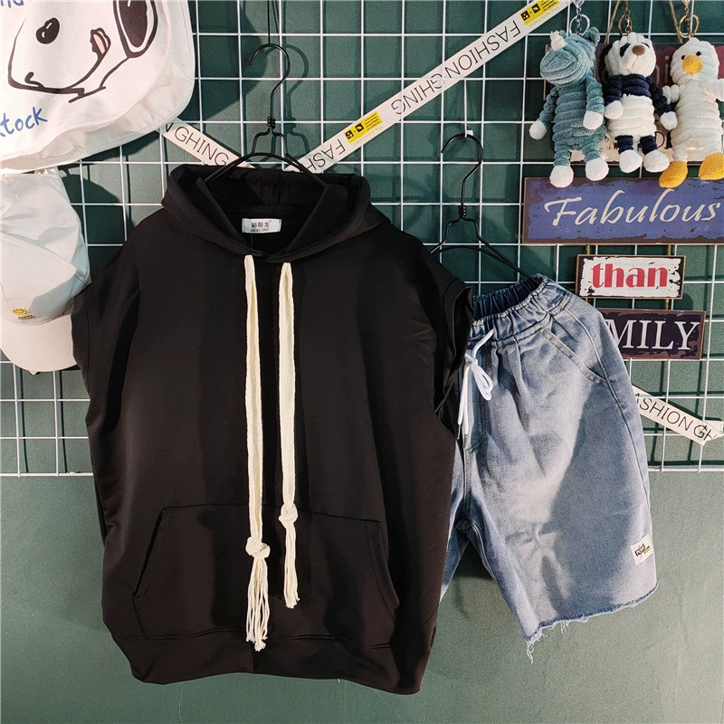 Sleeveless hooded denim shorts casually matched vest