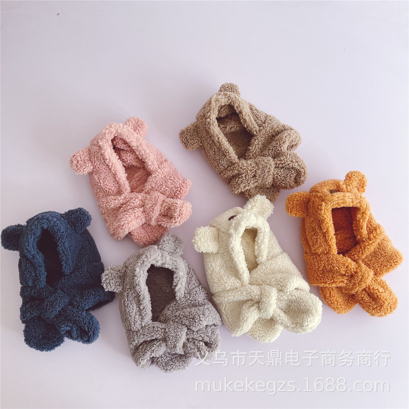 Han Feng Children’s Warm Baotou Hat Set Autumn and Winter Fleece Cute Bear Hat Scarf Scarf Two-piece Set
