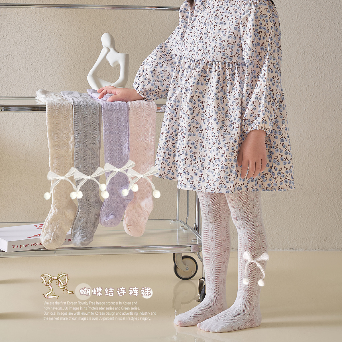 Children’s Pantyhose Spring and Summer Breathable Thin Sweet Bow Princess Socks Mesh Girl Anti-mosquito Leggings Socks