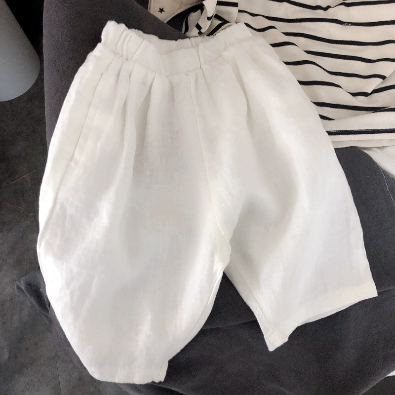PP Korean high -grade pure linen loose cropped pants children’s clothing