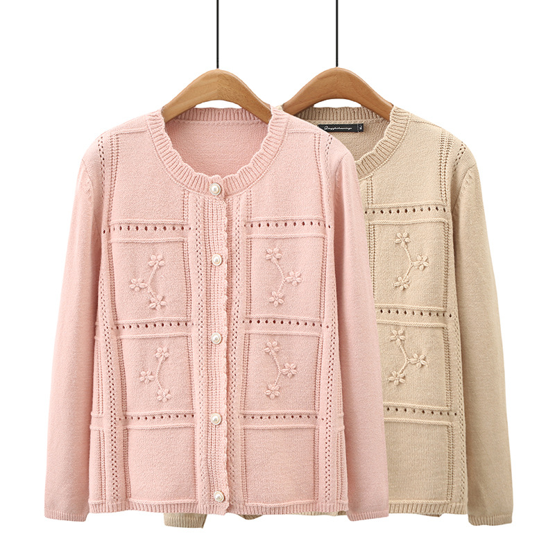 K6 plus size women’s autumn clothing new chubby girl slimming loose all-match casual knitted pearl buckle embroidered cardigan 2331
