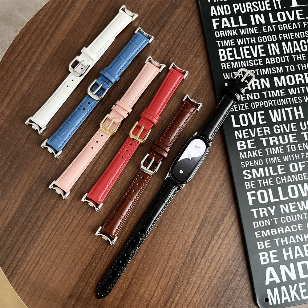 Suitable for mi bracelet 8 crocodile pattern leather bamboo pattern strap metal head grain fashion wristband replacement strap