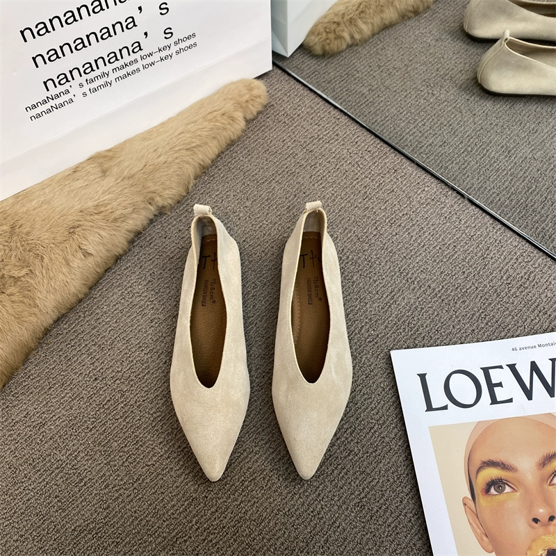 nana retro pointed pointed exit leather flat bottom single shoes