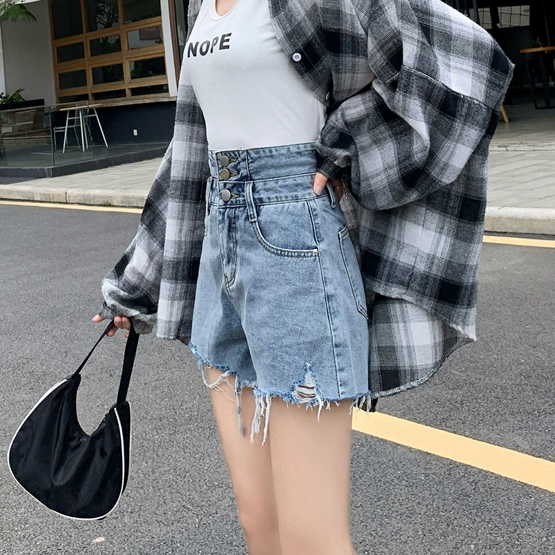 High waist tummy control ripped denim shorts with sweet and spicy outer wear