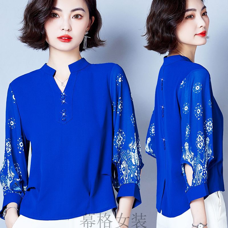 Chiffon Shirt Women’s Seven-point Sleeve 2024 Summer New plus size Belly Covering Top Small Shirt Elegant All-match French Shirt Women