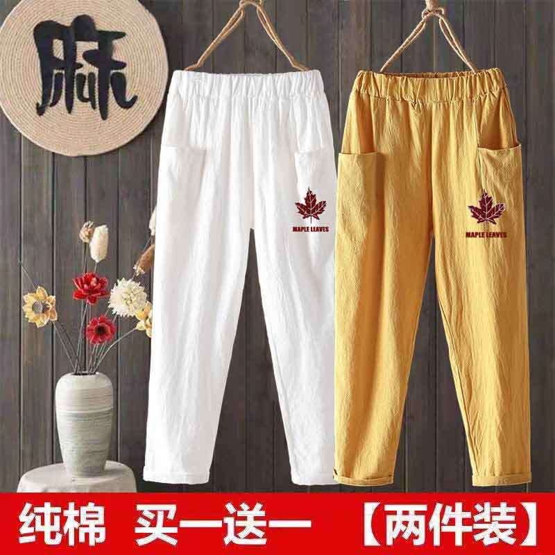 Two Pack: Summer New Loose Nine-minute Pants Fashion Mother Wear Thin Cotton and Linen Casual Pants for Women