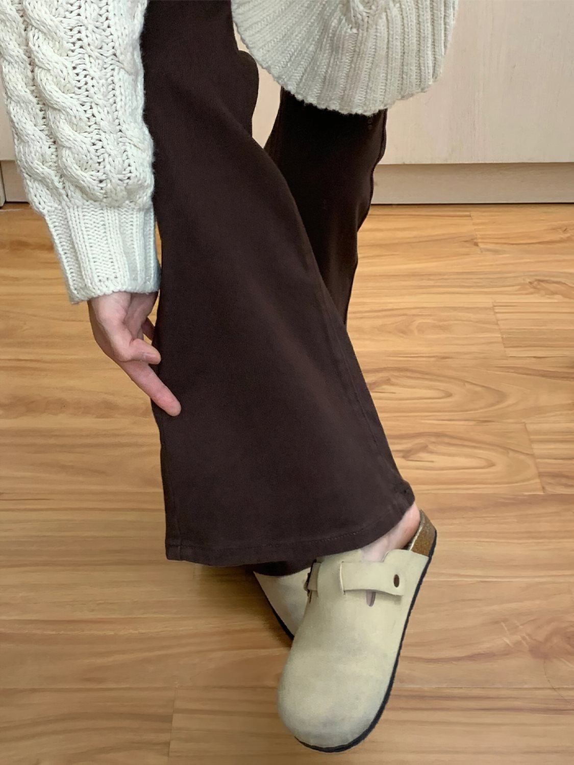 Brown skinny jeans for women Spring New style fat sister mm pear-shaped high waist stretch slimming wide leg pants