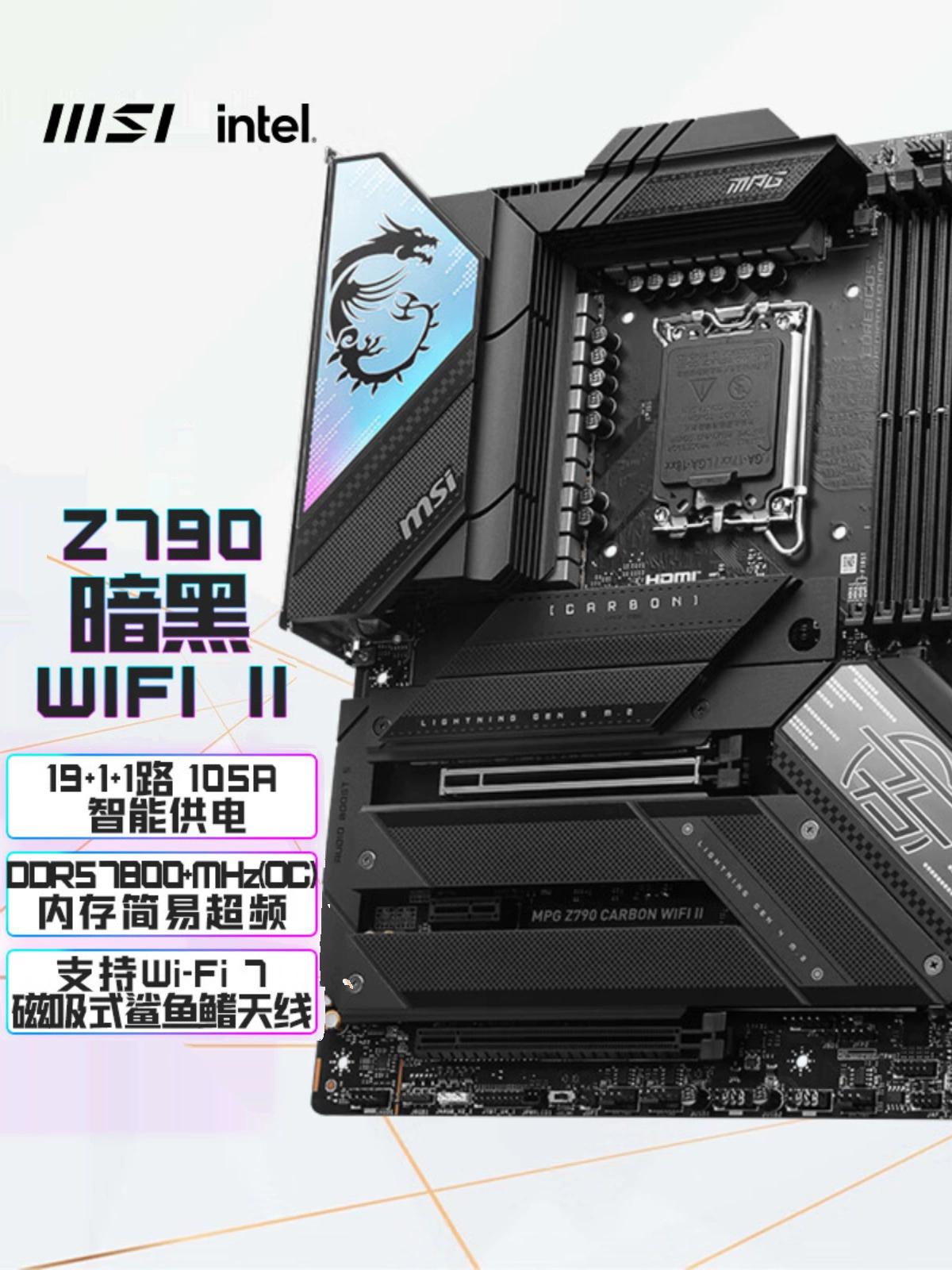 MSI MPG Z790 CARBON WIFI7 Dark II Generation Dual TYPE-C Memory Intelligent Overclocking 2.5G
