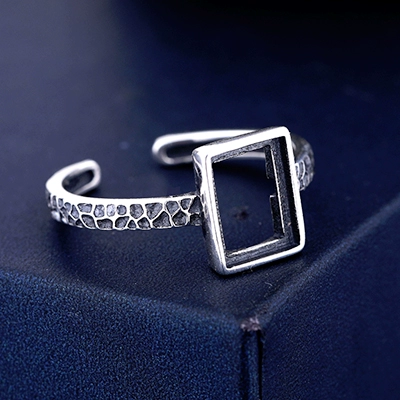 Ring setting for the woman S925 sterling silver ring empty setting inlaid with turquoise amber beeswax open ring setting retro color 6*8