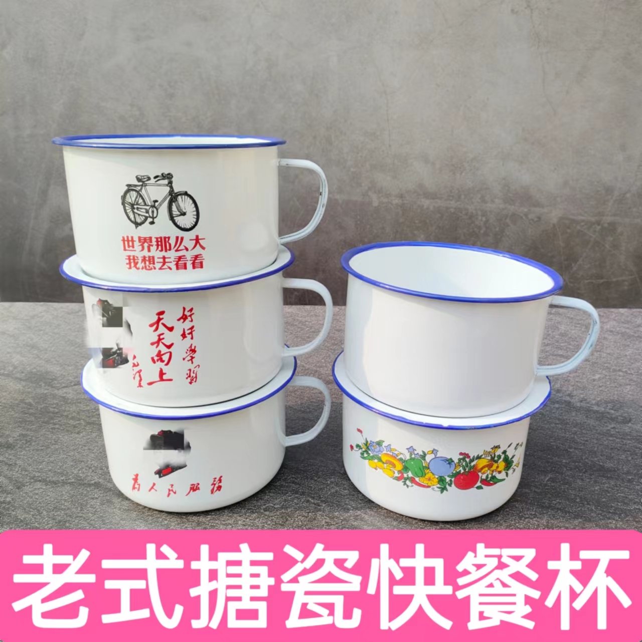 S228 Nostalgic Enamel Fast Food Cup Noodle Bowl Rice Jar Lunch Box Student Large Cooking Noodle with Lid Meal Cup Cooking Noodle Bowl