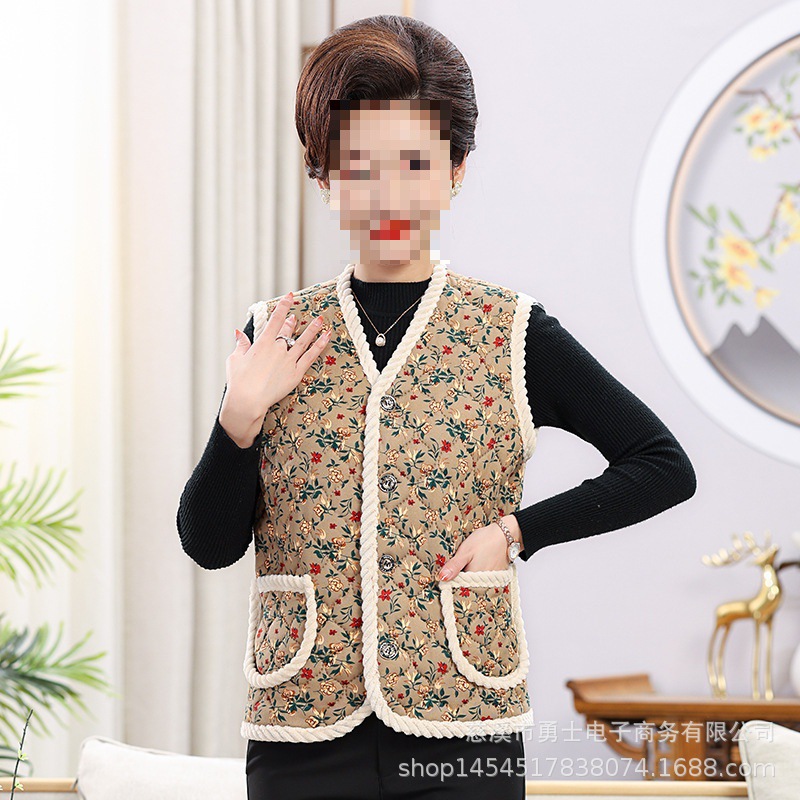 Mother’s Spring Dress Middle-aged and Elderly Women’s Autumn Vest Plus Velvet Clip Middle-aged Large Size Waistcoat Wholesale Little Red Riding Book