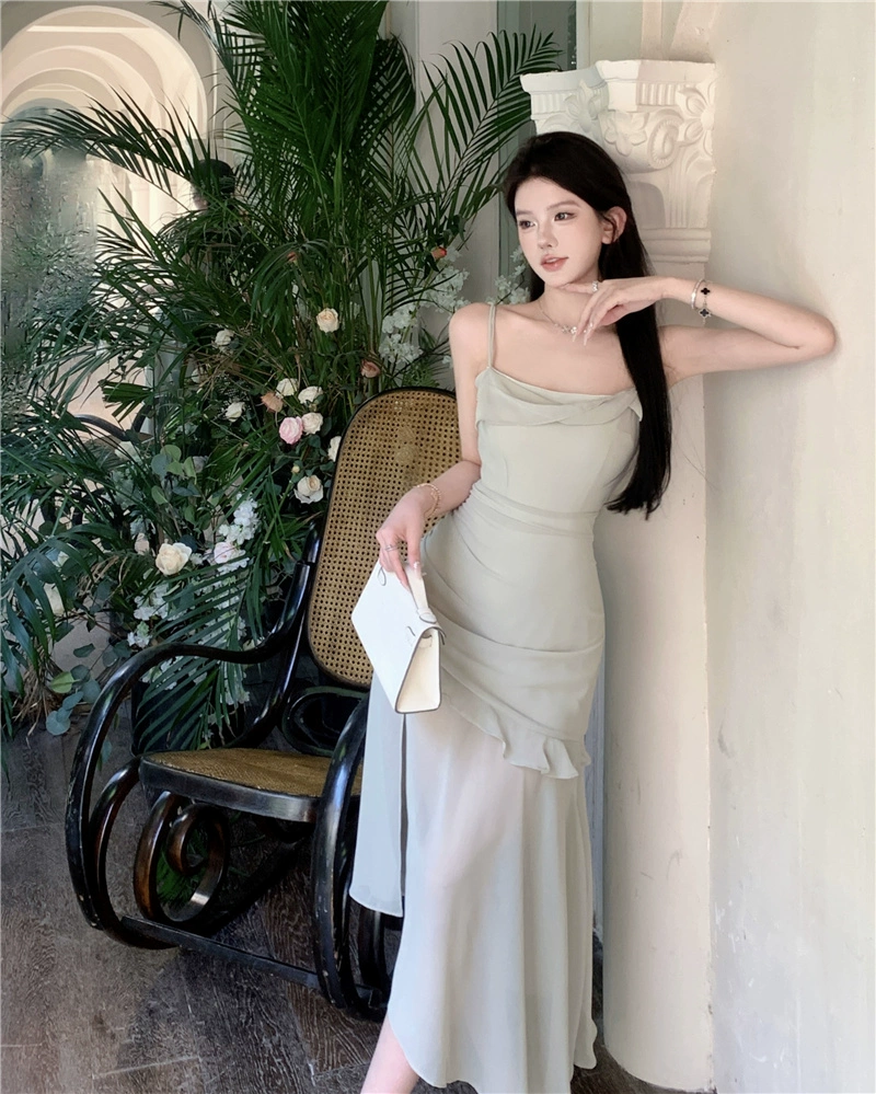 Gentle chiffon French irregular strap dress
