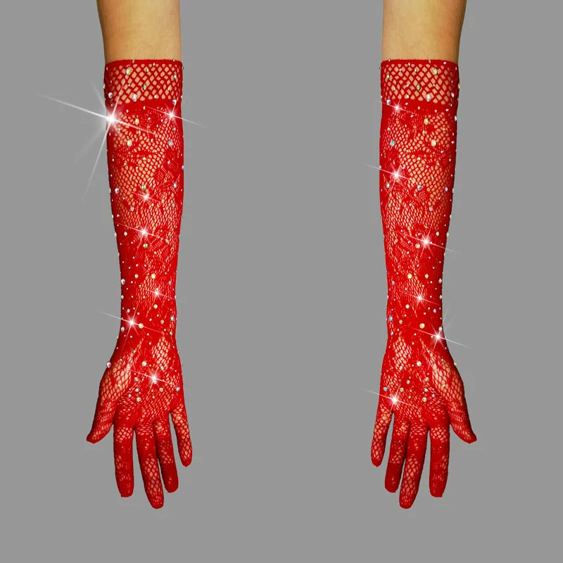 Summer sexy hot drill black five fingers refers to hot diamonds shiny fishing small net eye etiquette wedding dress sunscreen summer gloves