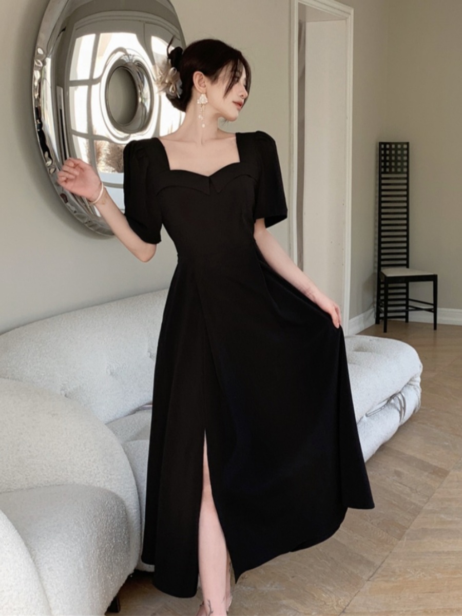 MM French summer slightly fat slit short-sleeved dress