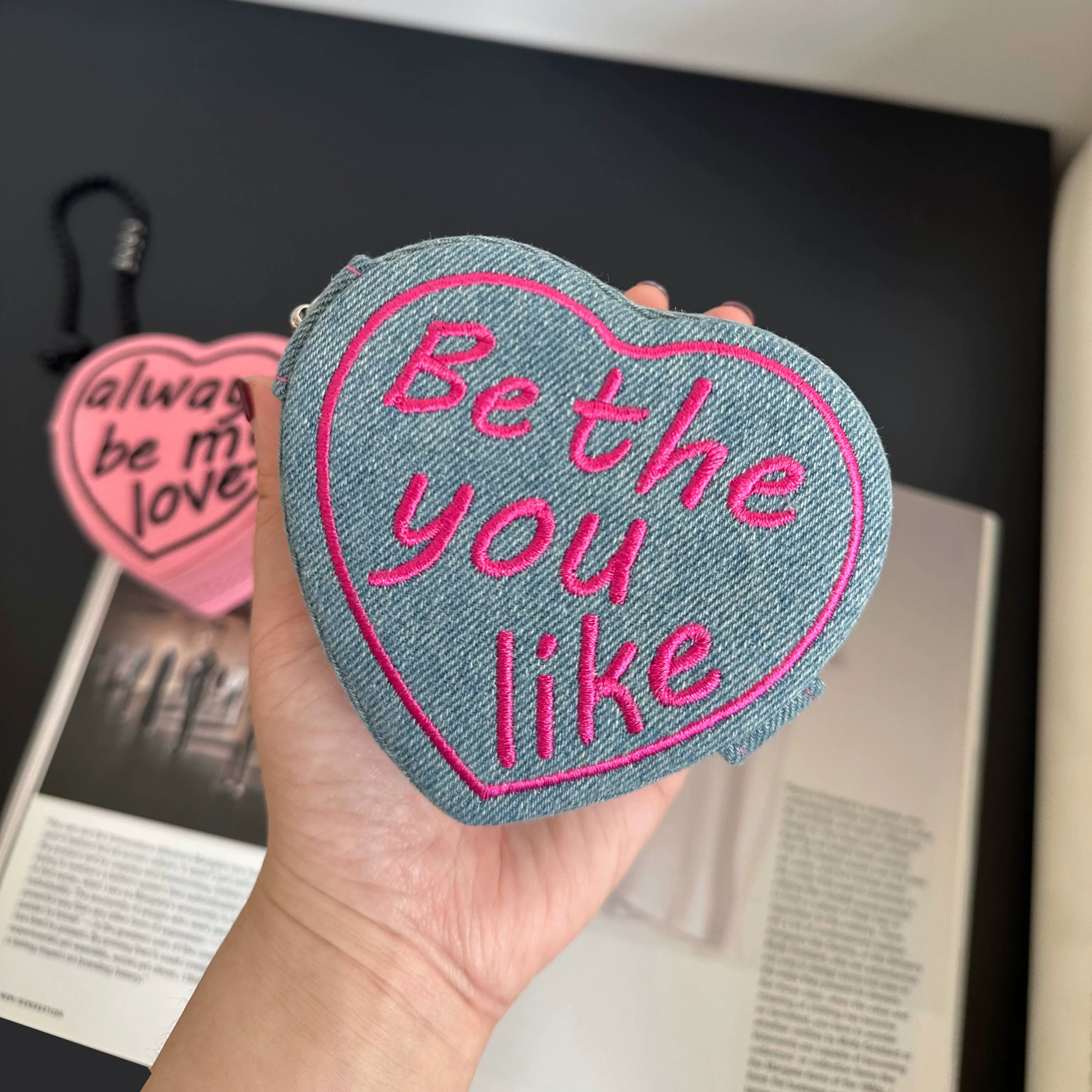 Heart -shaped cake mini denim portable travel jewelry box