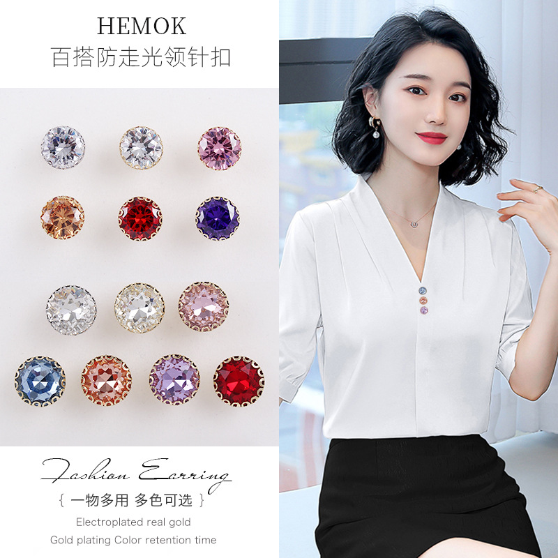 All-match round crystal anti-light small button high-grade micro-inlaid zircon small brooch collar pin personalized accessories niche