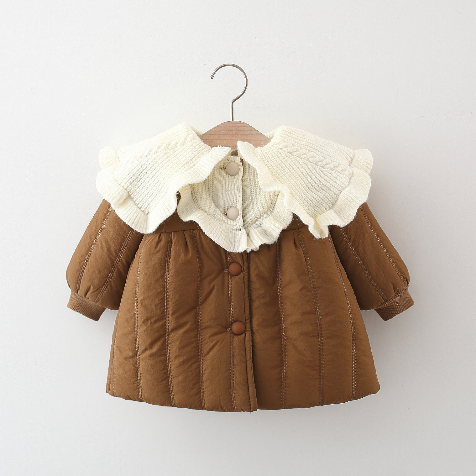 2024 winter new wool lace large lapel cotton-padded coat girls velvet thick fashion princess small cotton-padded jacket