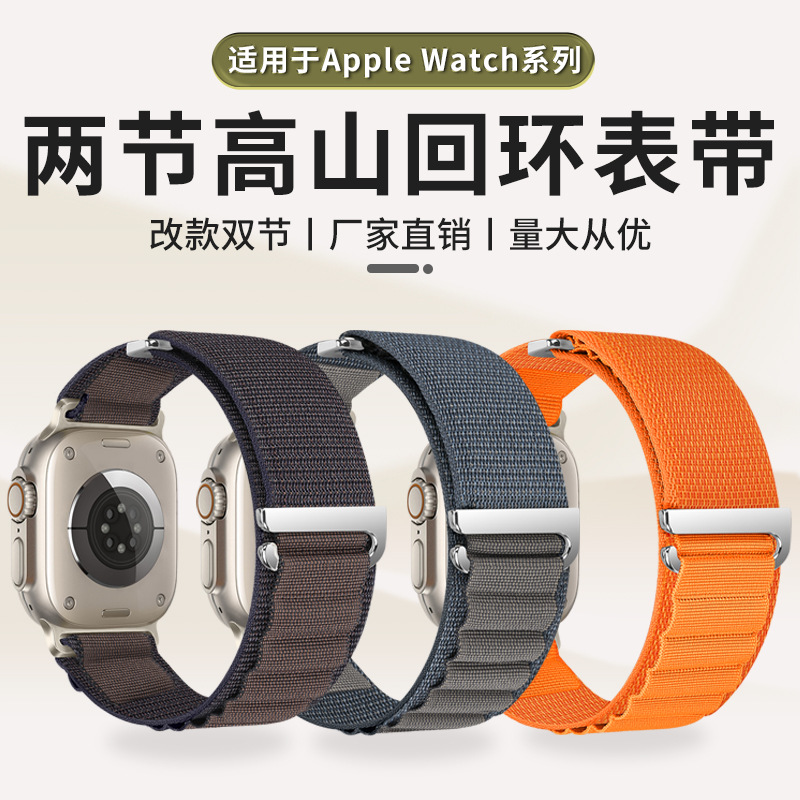 Suitable for Apple applewatch s9 strap ultra mountain modified two-section nylon loop iwatch strap