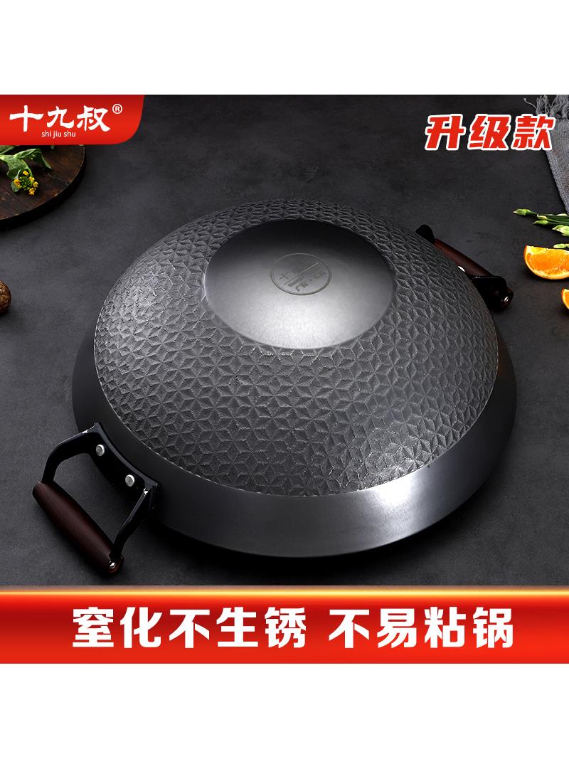 #19 uncle iron pan non-stick pan uncoated smothering rust-free diamond non-slip round bottom old traditional stir-frying