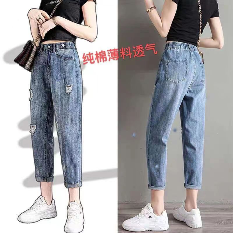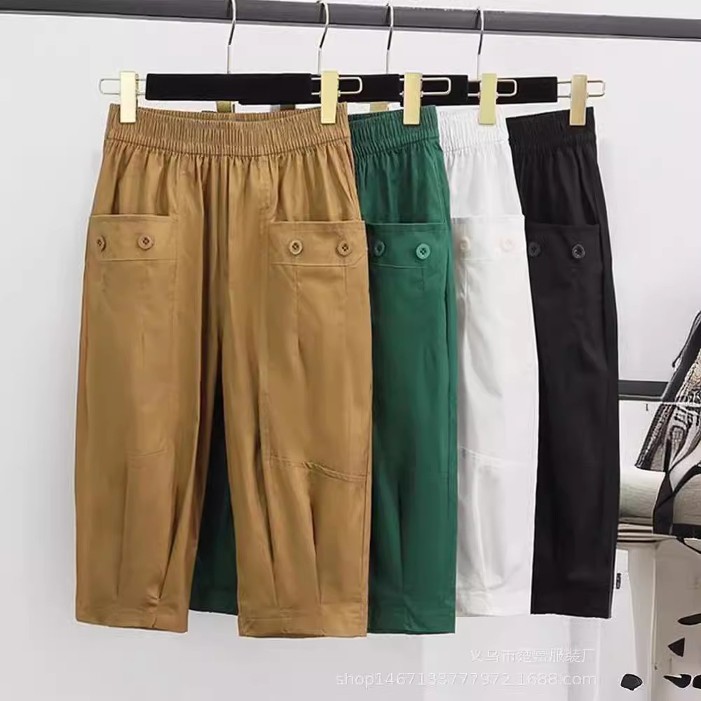 New Summer Women’s Ice Cotton Casual All-match Haren Pants Women’s Thin Stappy Waist Six-point Pants Stomp Cotton Straight-leg Pants