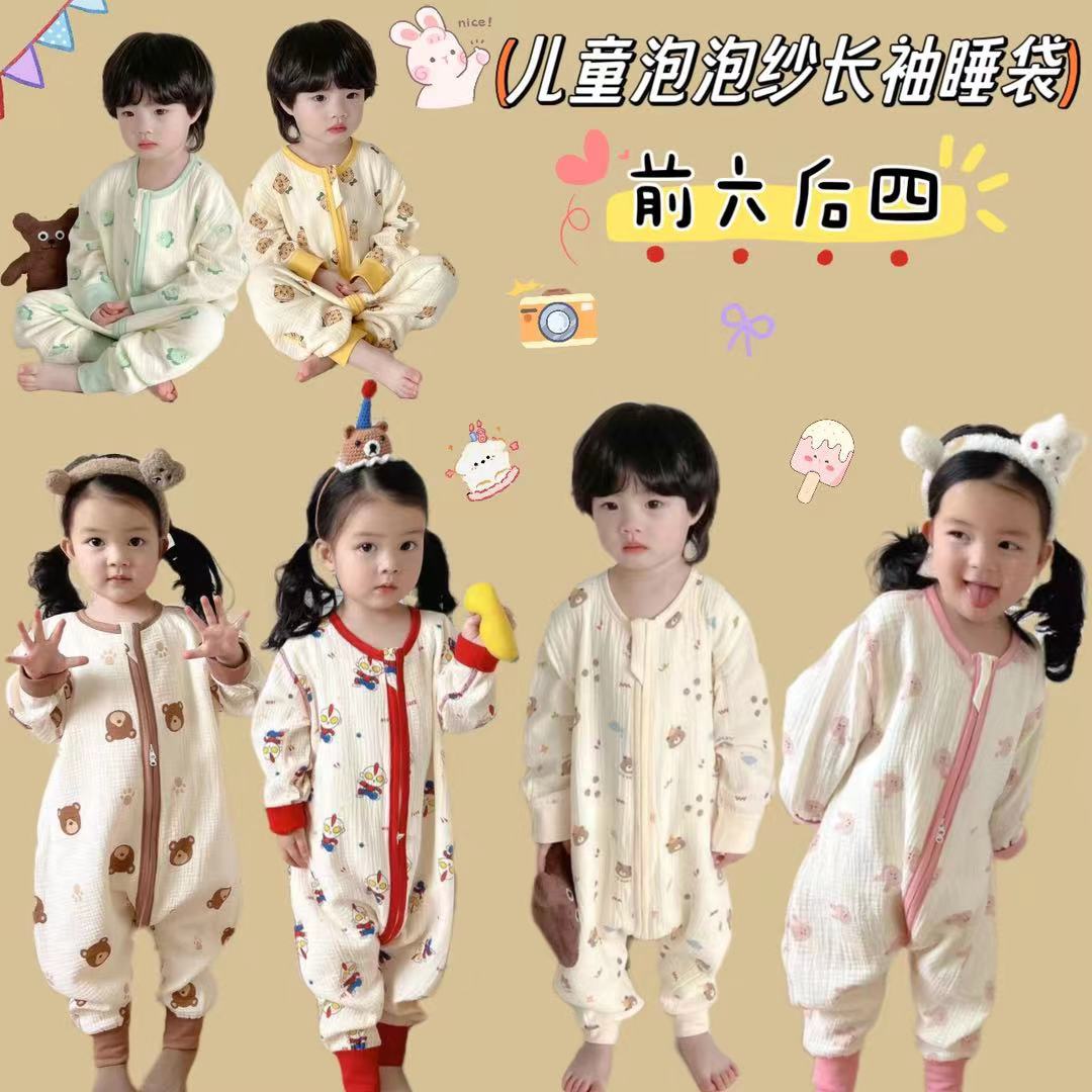 23 autumn and winter seamless gauze front 6 Rear 4 baby long-sleeved sleeping bag split leg anti-kick crawling clothes Cotton