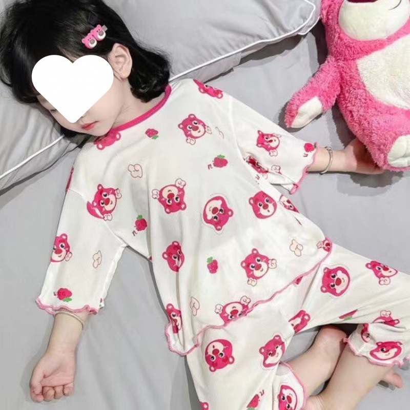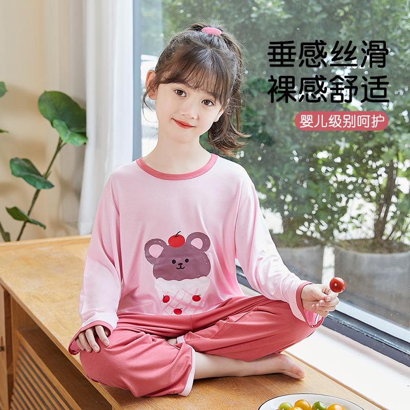 Girls’ pajamas spring and autumn modal pajamas children’s suit cute bear Girls’ Home clothes one-piece delivery