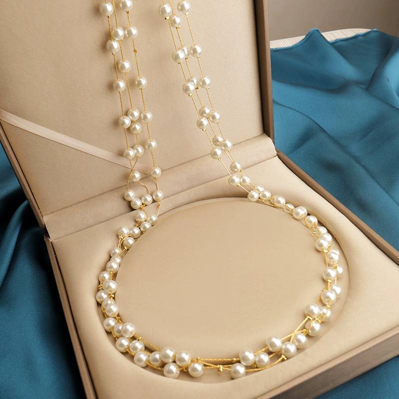Long necklace for women, Japanese and Korean multi-layer chain, small fragrant style pearl decorative chain, Internet celebrity hanging chain, autumn and winter versatile sweater chain