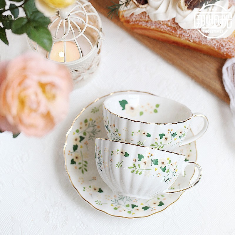 TD61 Coffee Cup with Spoon British Afternoon Tea Flower Tea Cup Coffee Cup and Saucer European Style Small Luxury Household