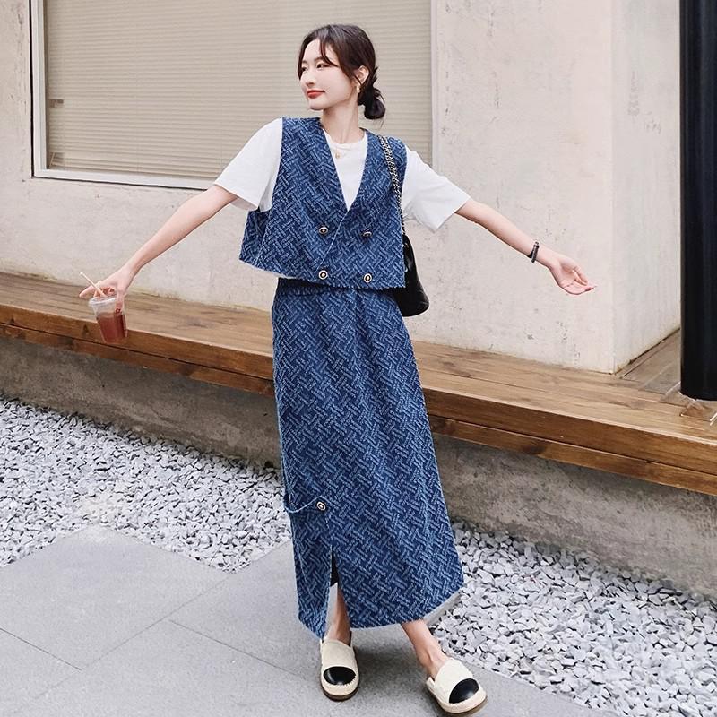 Summer dress with a set of Denim waistcoat skirt two-piece 2024 new this year’s popular beautiful suit skirt